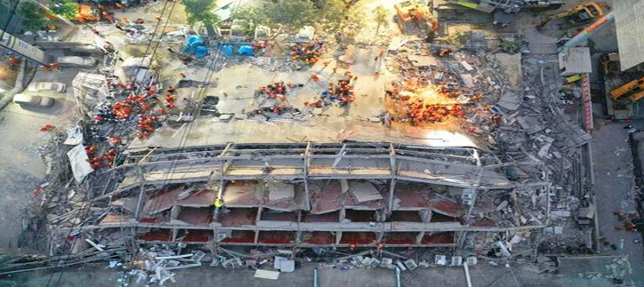 建筑物坍塌后现场航拍照片(从北往南拍摄)