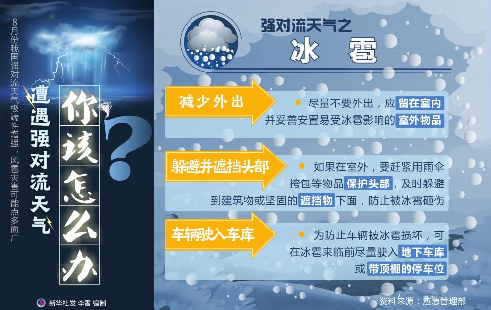 从应急管理部获悉,多方会商研判认为,8月份中国强对流天气极端性增强,风雹灾害可能点多面广。遭遇强对流天气,你该怎么办?