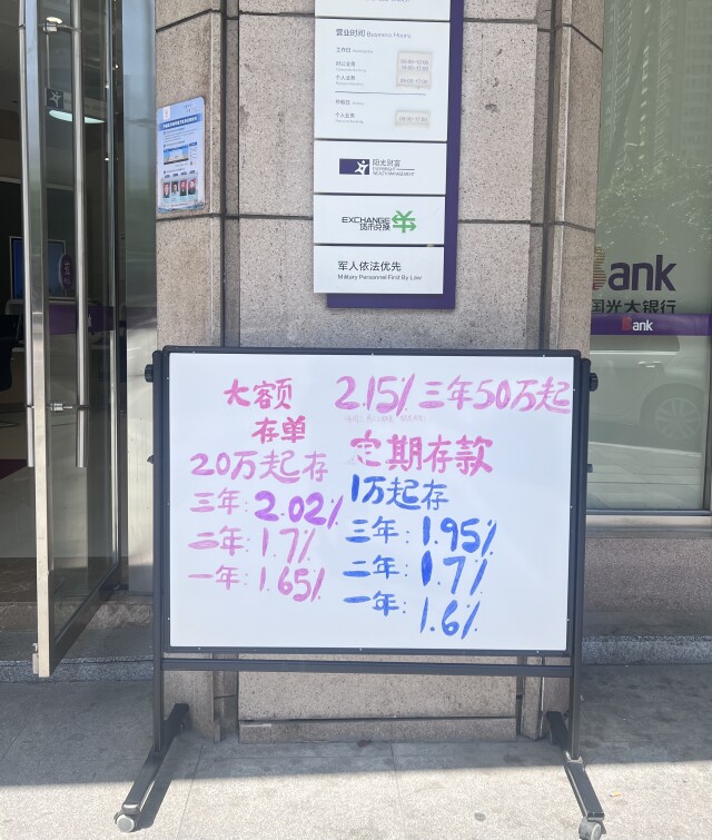 前文急着定存的胡女士说:“我这几天国有大行、股份制银行跑了一圈,定期、理财、基金也问了一圈,即使利息聊胜于无我还是存定期比较稳妥。”