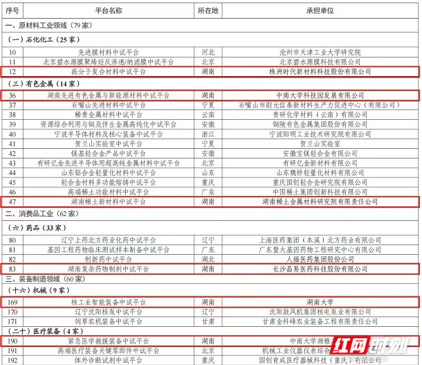 湖南省入选首批工业和信息化部重点培育中试平台初步名单。