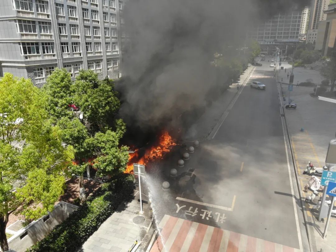 今年7月,上海崇明区翠竹路某小区内一电动自行车停车棚突发火情。消防员接警后立即到场展开扑救,火灾未对周围居民楼造成影响,但棚内停放的30余辆电动自行车,不同程度烧毁烧损。