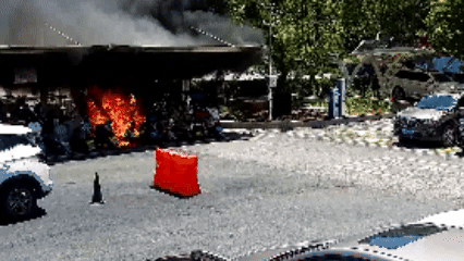 有小区居民介绍,听到异响声后便起床查看,发现车棚已陷入一片火海。